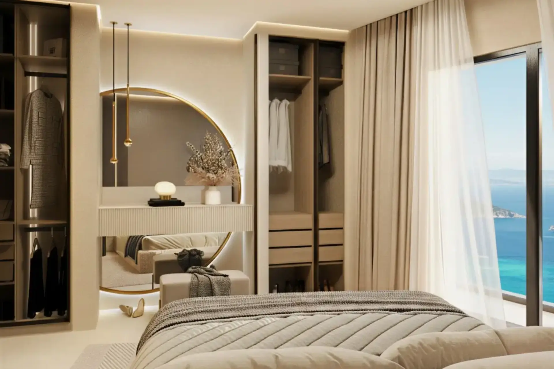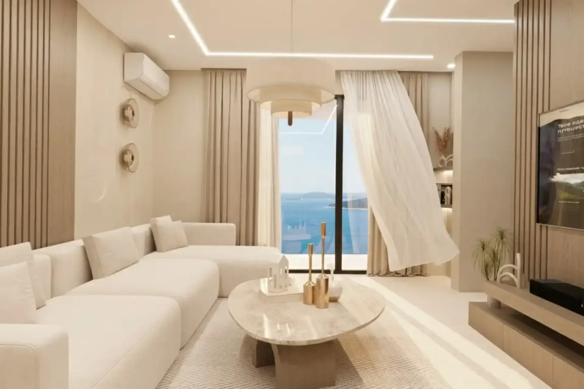 Vue dégagée sur mer: grandes baies vitrées offrant une ouverture vers l’extérieur et baignant chaque espace de lumière naturelle.